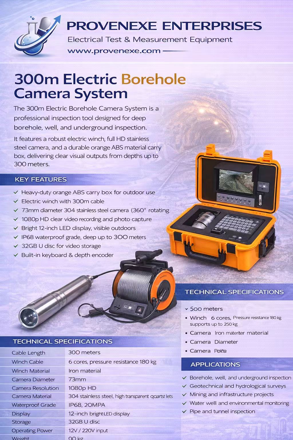 Plate Electric Borehole Camera System 100m, 300m, 600m.