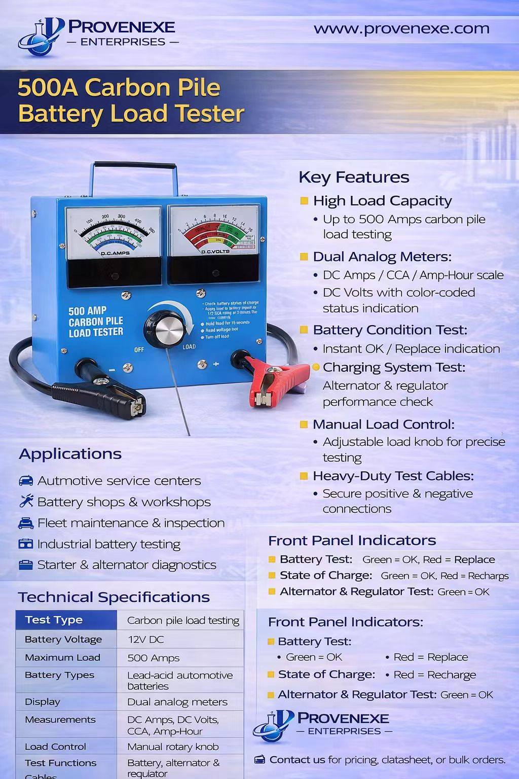 500A Carbon Pile Battery Load Tester
