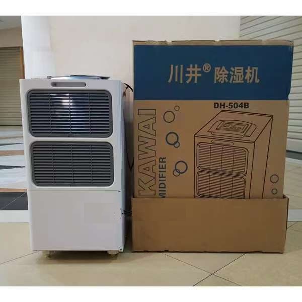 The CHKAWAI DH-504B is a commercial-grade CE & CCC certified dehumidifier designed for moisture control in warehouses, cleanrooms, laboratories, hospitals, and industrial environments. It features high dehumidification capacity, low noise operation, and reliable performance. The unit is equipped with a LED display, micro-computer control, humidity and water float sensors, and safety features such as bucket full alarm with delay protection.