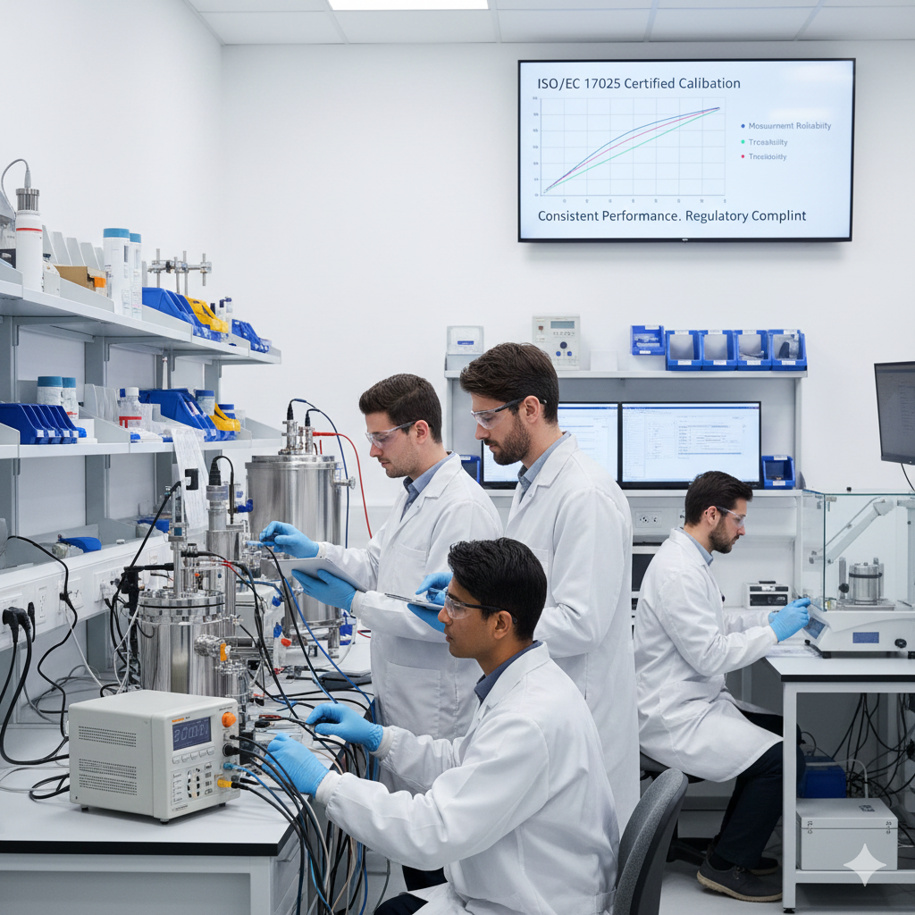 Accurate calibration of instruments and systems to maintain measurement reliability, traceability, and performance consistency, aligned with ISO and regulatory measurement requirements.