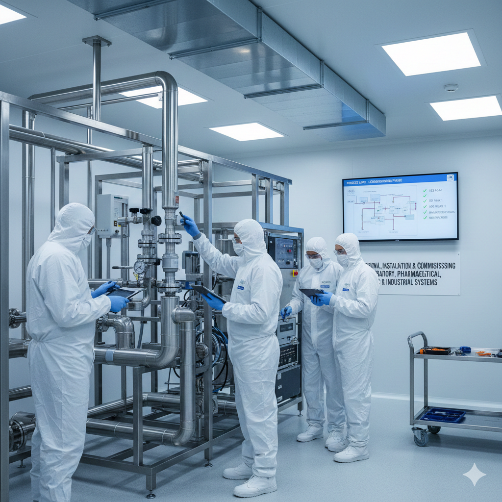 Professional installation and commissioning of laboratory, pharmaceutical, cleanroom, HVAC, and industrial systems, executed in line with project specifications, manufacturer recommendations, and relevant ISO / GMP guidelines.