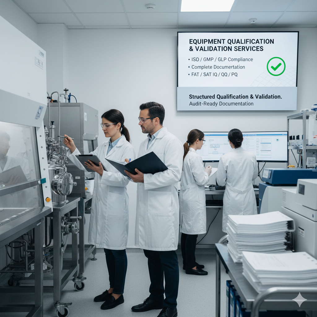 Structured qualification and validation services for equipment and systems, supporting ISO, GMP, and GLP requirements, with complete documentation for inspections and audits